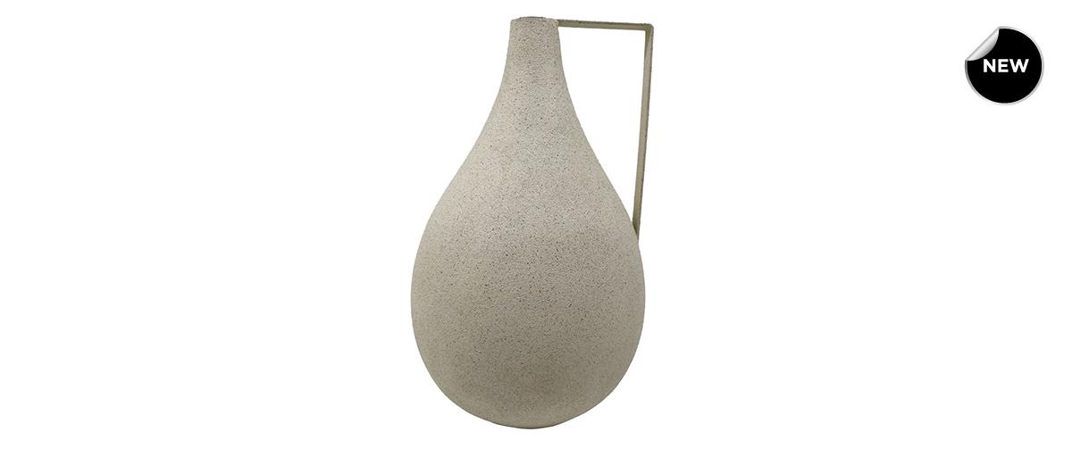 Αναδείξτε τον χώρο σας με το ANFORA, ένα κομψό βάζο από beige polyresin με τριγωνικό χερούλι που προσθέτει διακριτική αρχιτεκτονική λεπτομέρεια.