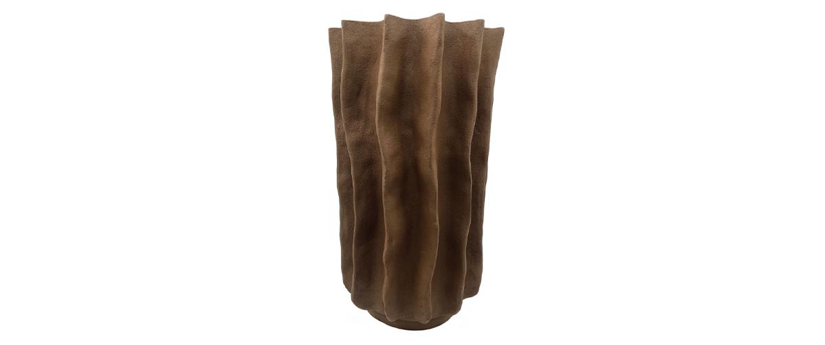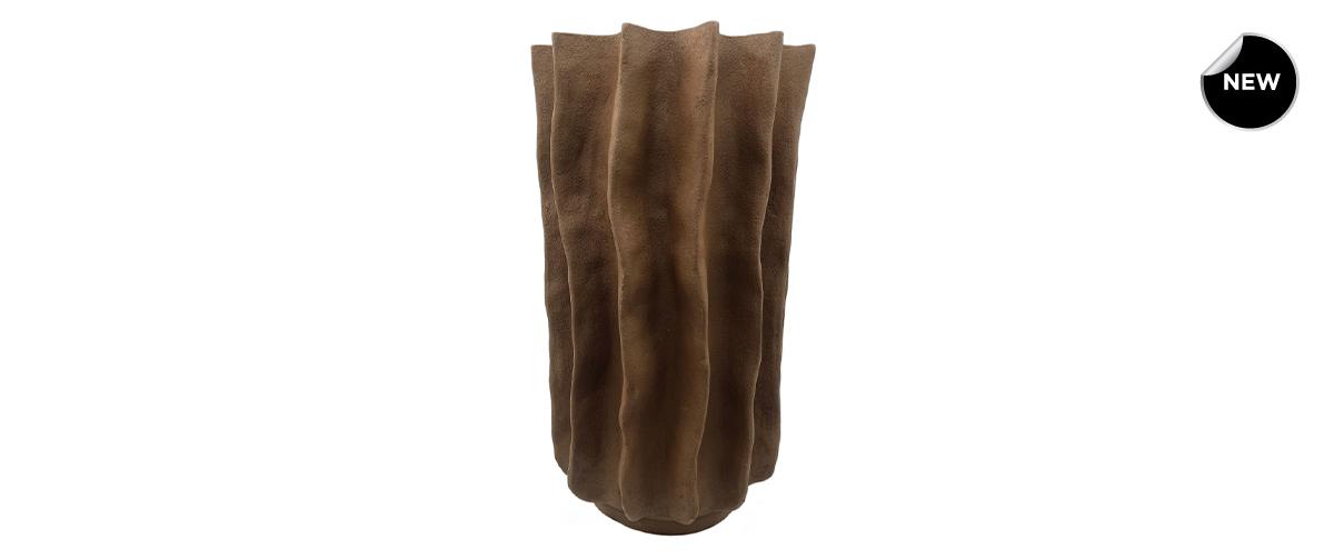 Αναβαθμίστε τον χώρο σας με το FOLDA, ένα ψηλό και κομψό βάζο από brown dark polyresin με έντονες πτυχώσεις στα πλάγια, που προσδίδουν sculptural χαρακτήρα και αρχιτεκτονική λεπτομέρεια.