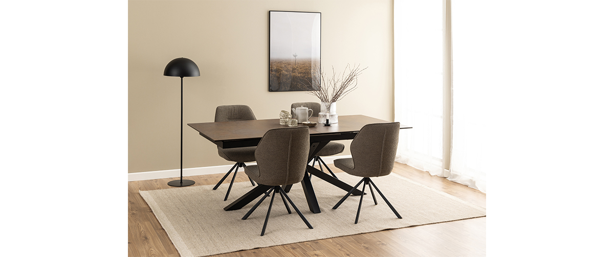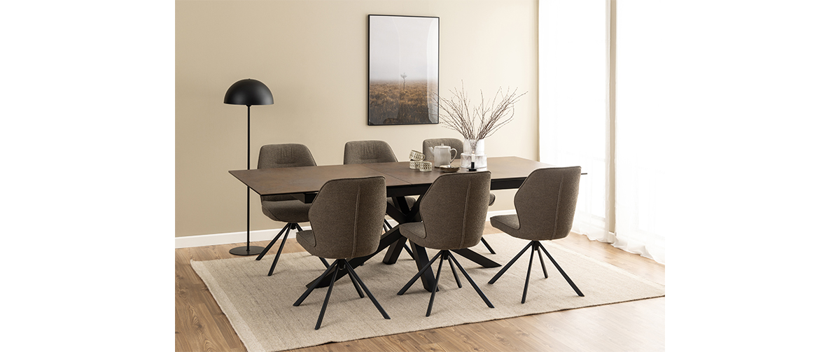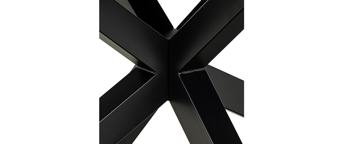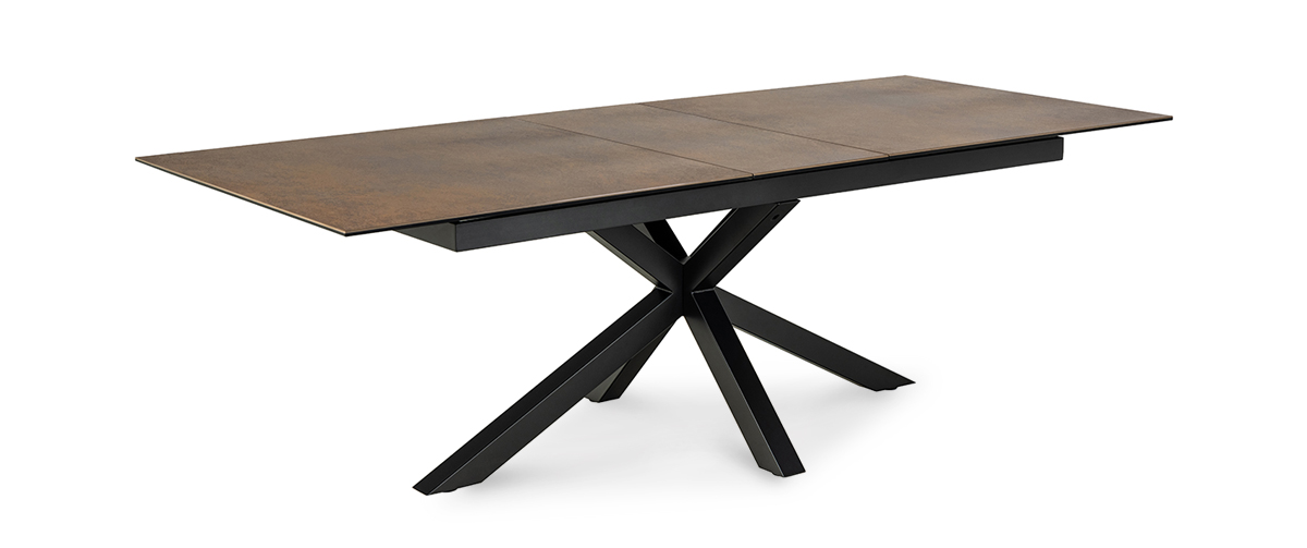 Η ορθογώνια τραπεζαρία Heaven με κεραμική επιφάνεια και σταυρωτή βάση από μαύρο ατσάλι,