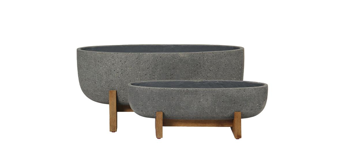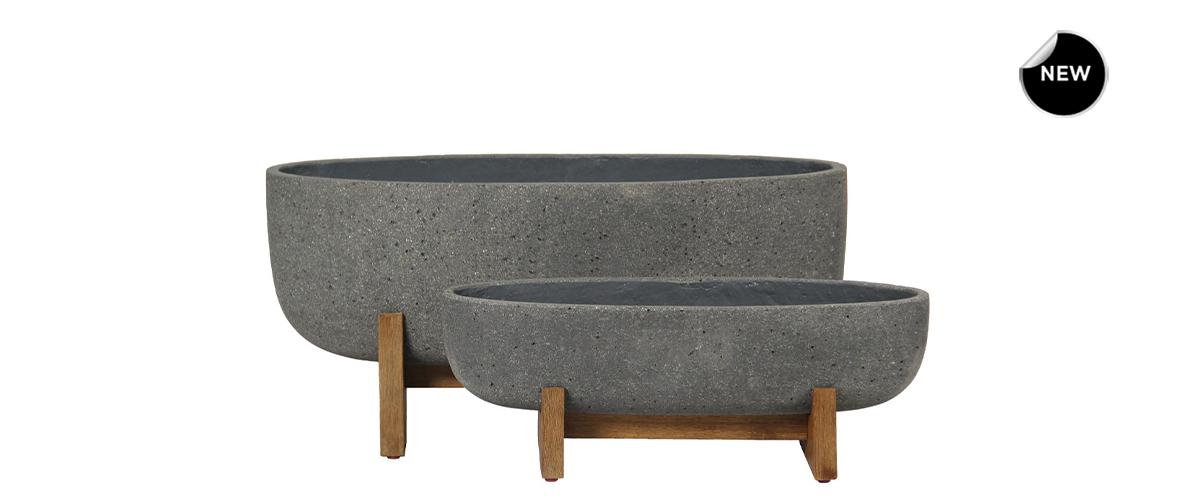Ανακαλύψτε τη διακριτική κομψότητα του σετ κασπώ “Zinnia”, με μακρόστενο σχήμα και απαλή οβάλ γραμμή, που συνδυάζεται αρμονικά με τις ξύλινες βάσεις με κομψά ποδαράκια.