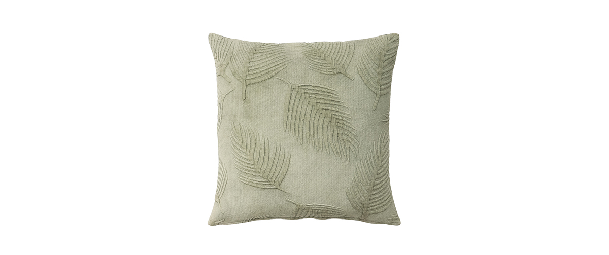 Το μαξιλάρι είναι κατασκευασμένο από μαλακό ύφασμα σε απόχρωση μέντα, με απτή υφή σε σχέδιο φυλλώματος, που δημιουργεί όμορφη υφή και διακριτικό στυλ.