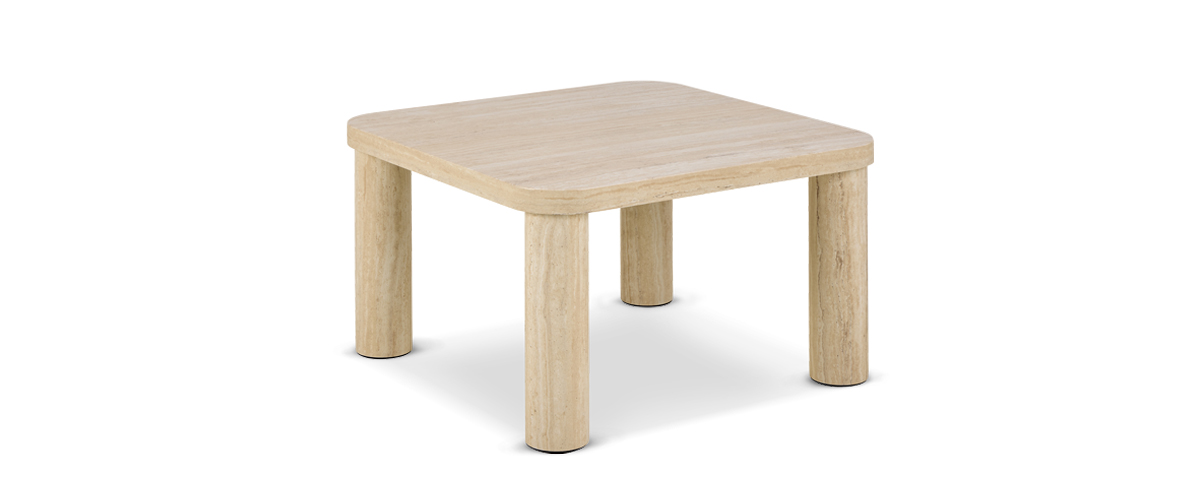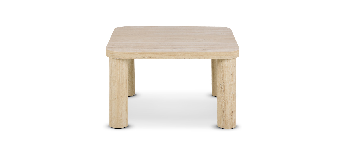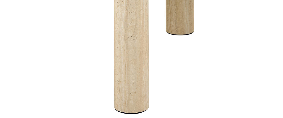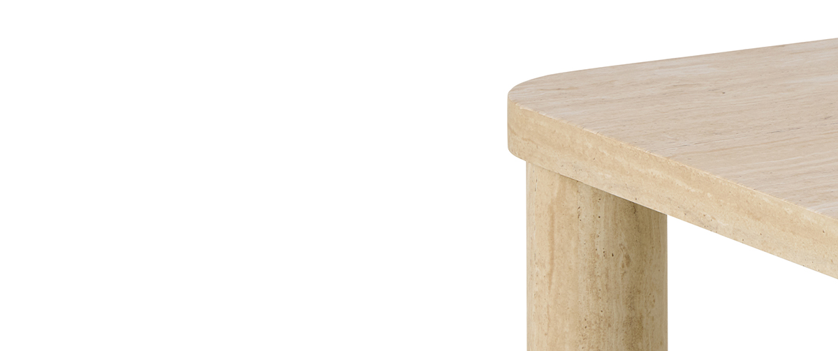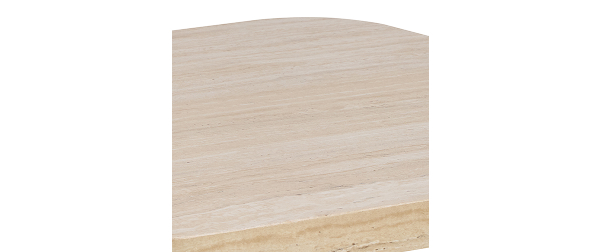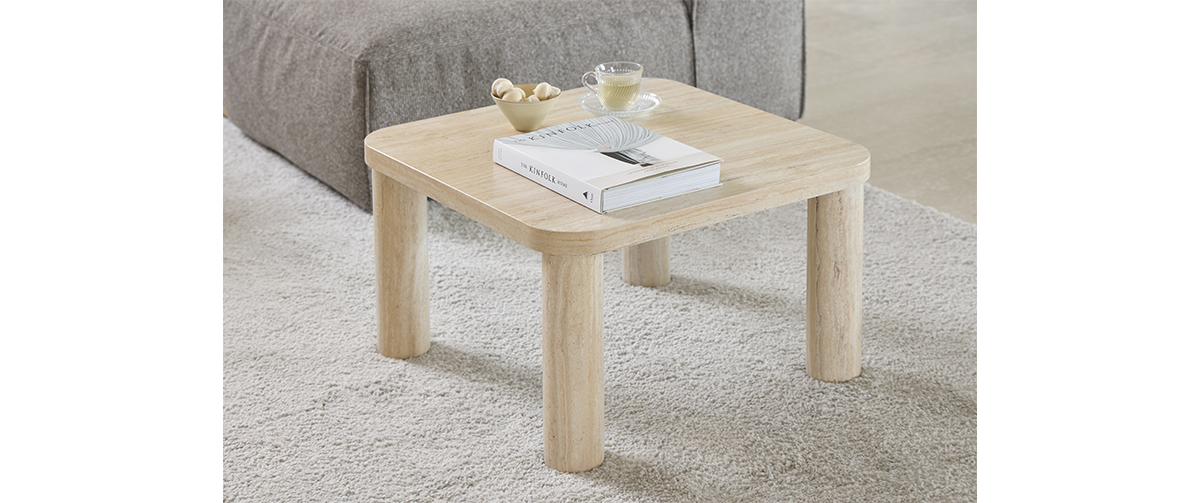 Επενδυμένο με όψη τραβερτίνο, αυτό το τραπεζάκι σαλονιού ενσωματώνεται αρμονικά στον χώρο, προσδίδοντας έναν ξεχωριστό χαρακτήρα.