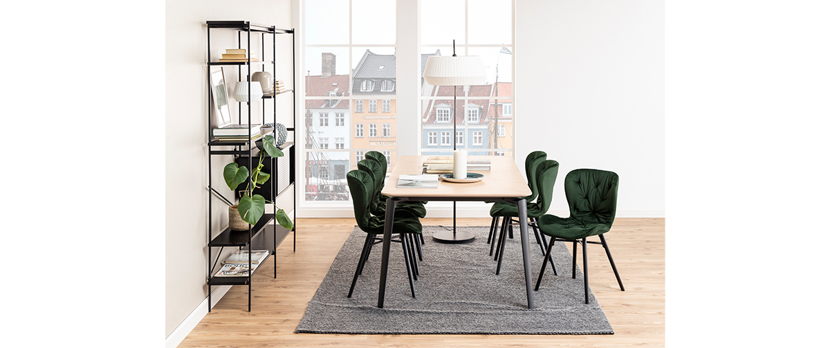 είναι μια καρέκλα μοντέρνου design, επενδεδυμένη με ύφασμα βελουτέ και με ξύλινα πόδια σε μαύρη απόχρωση, που συνδυάζεται εύκολα με τραπέζια τραπεζαρίας διαφορετικού ύφους.