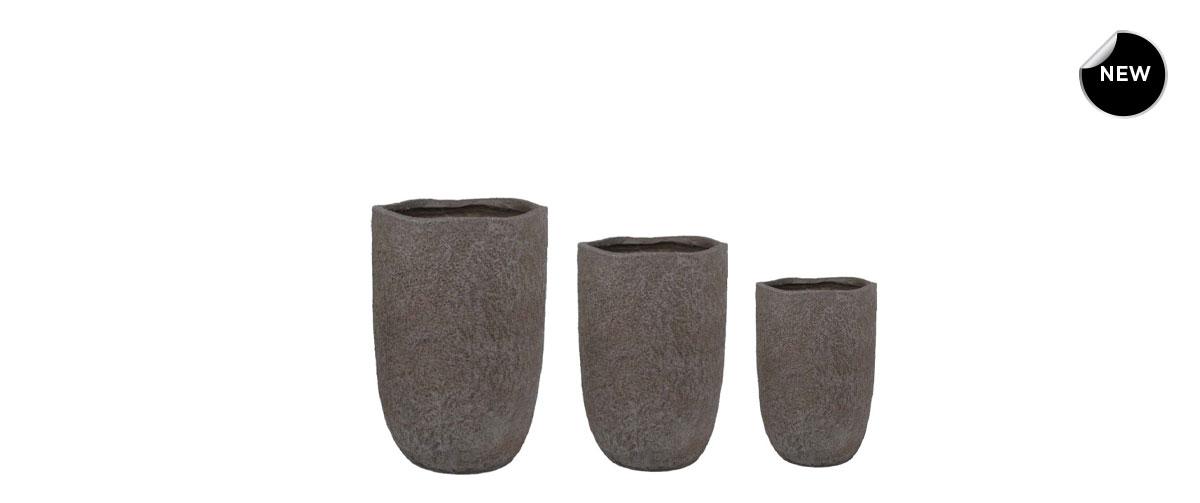 Το σετ κασπώ Solin αποτελεί μια κομψή και σύγχρονη επιλογή για τη διακόσμηση εσωτερικών και εξωτερικών χώρων. Η σκούρα γκρι απόχρωση σε συνδυασμό με την τραχιά υφή δημιουργεί μια φυσική, γήινη αισθητική που ταιριάζει ιδανικά σε μοντέρνα, industrial αλλά και minimal περιβάλλοντα.