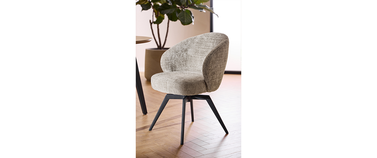 Περιστρεφόμενη καρέκλα τραπεζαρίας Darlene με μπράτσα, ύφασμα Juto και βάση από ατσάλι, συνδυάζει σύγχρονο σχεδιασμό,