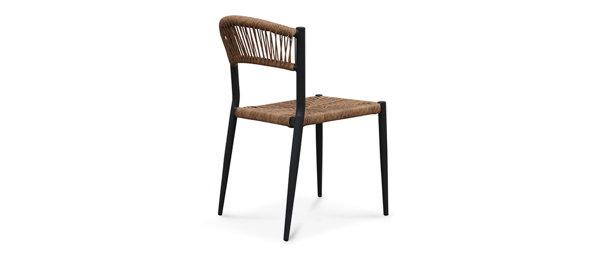 Ο στιβαρός σκελετός από αλουμίνιο σε μαύρη απόχρωση προσφέρει σταθερότητα και ελαφριά κατασκευή, ενώ η πλάτη και το κάθισμα από συνθετικό rattan σε καρυδί απόχρωση χαρίζουν ζεστασιά και φυσική αίσθηση.