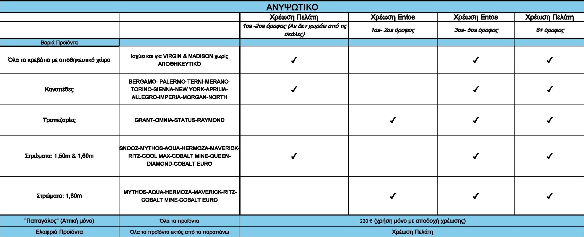 Η χρέωση των μεταφορικών γίνεται με βάση τον παρακάτω πίνακα: