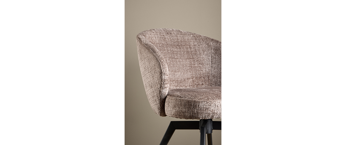 Darlene swivel dining chair with armrests, Juto fabric and steel base, combines contemporary design,