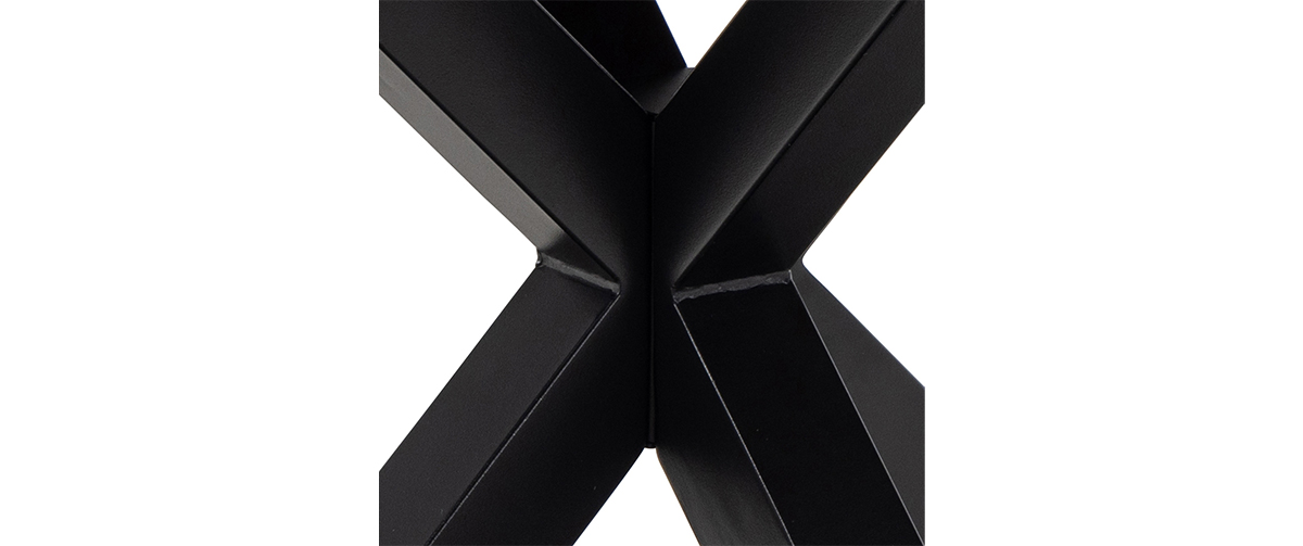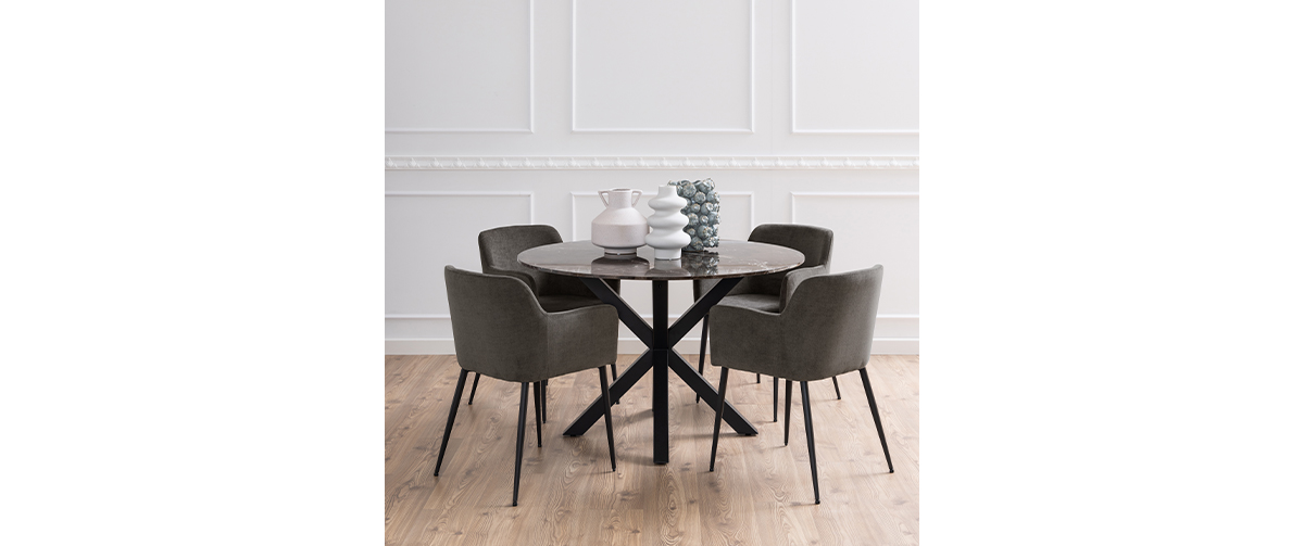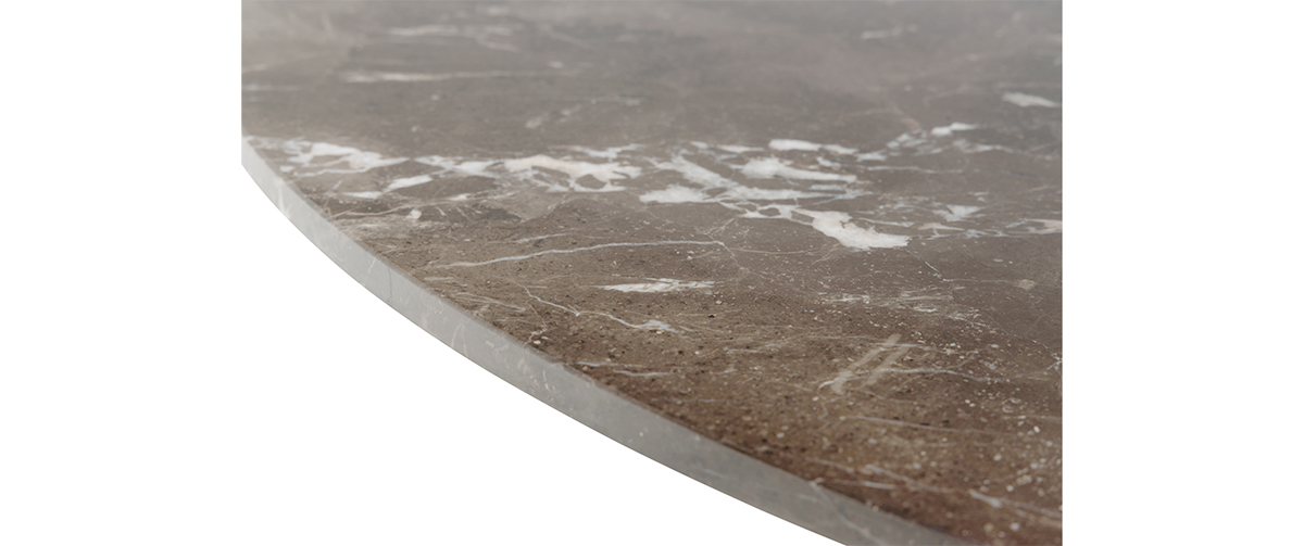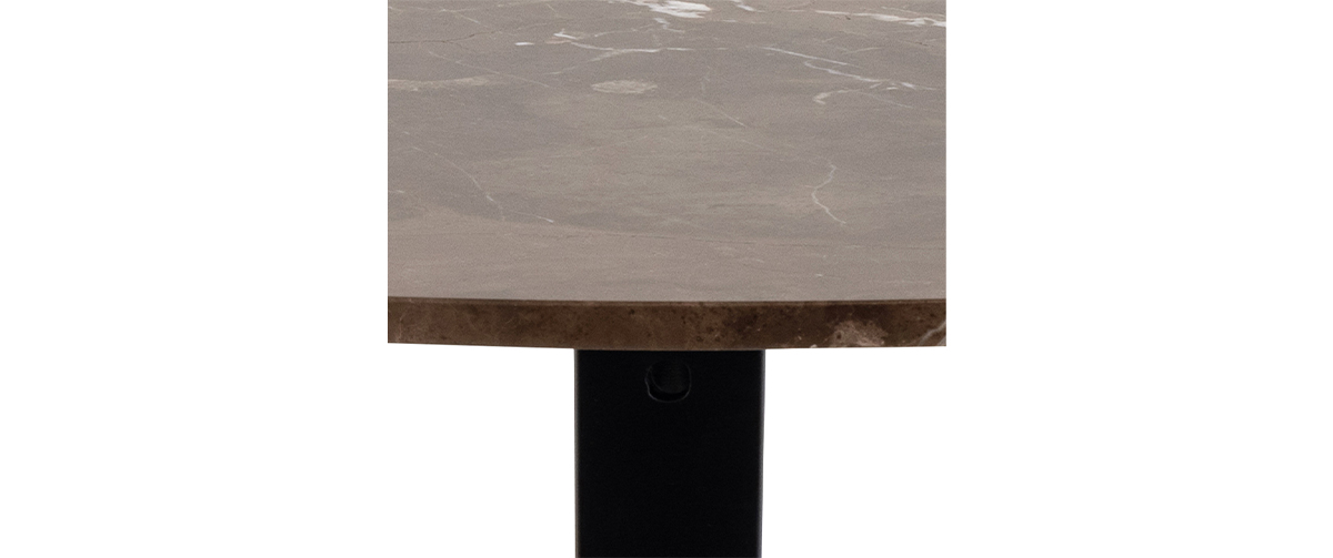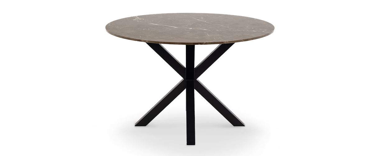 The round Heaven dining table with Emperador marble top and matte black steel base,