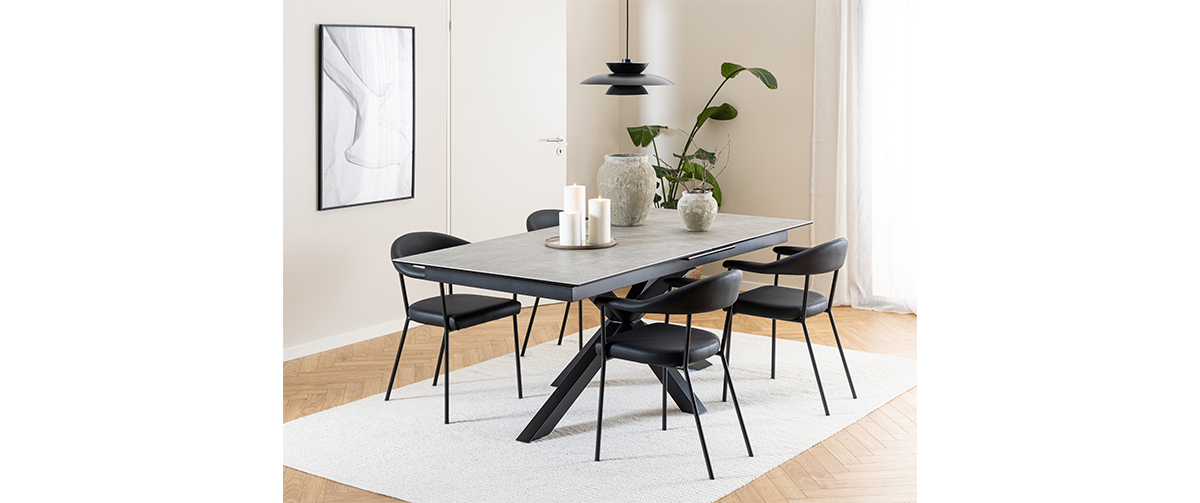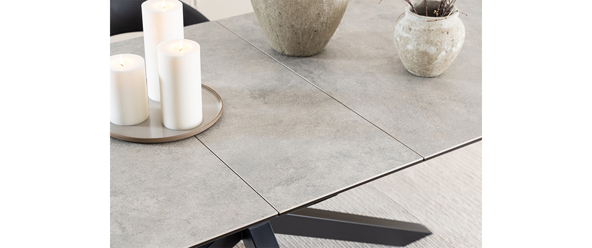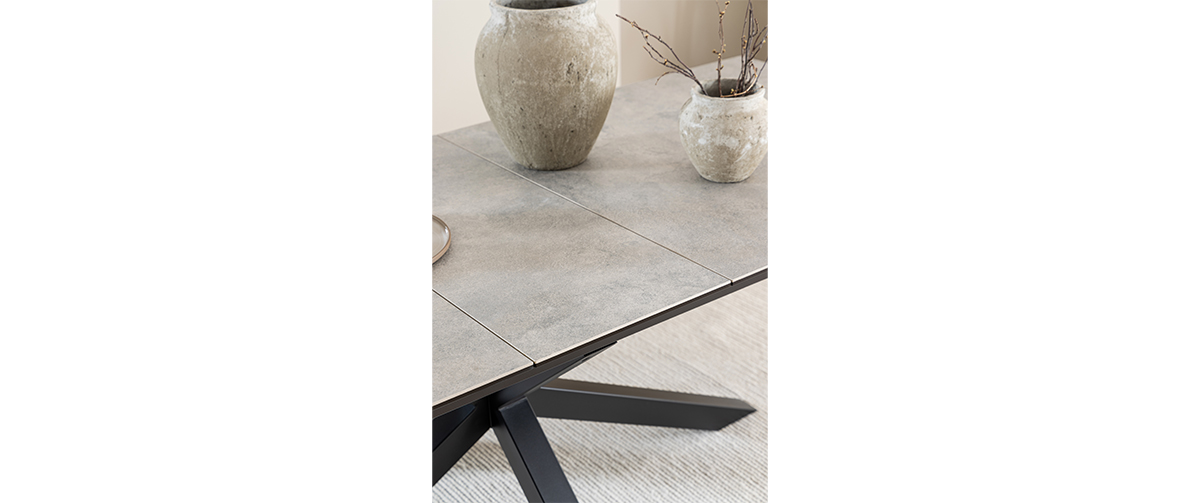 The rectangular Heaven dining table with ceramic top and a cross-shaped base